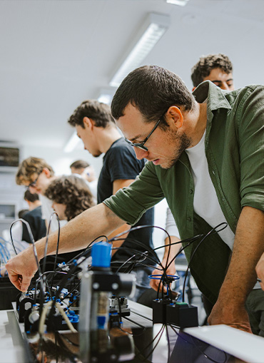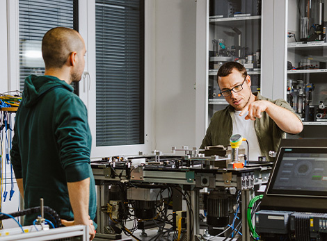 Hier treffen Elektro-, Maschinenbau- und Informatiktechnik zusammen. Im Austausch mit Dozenten aller Disziplinen entwickeln Sie Ihr umfassendes Systemverständnis an den Schnittstellen zwischen mechanischer Konstruktion und industrieller Kommunikation lösungsorientiert weiter.